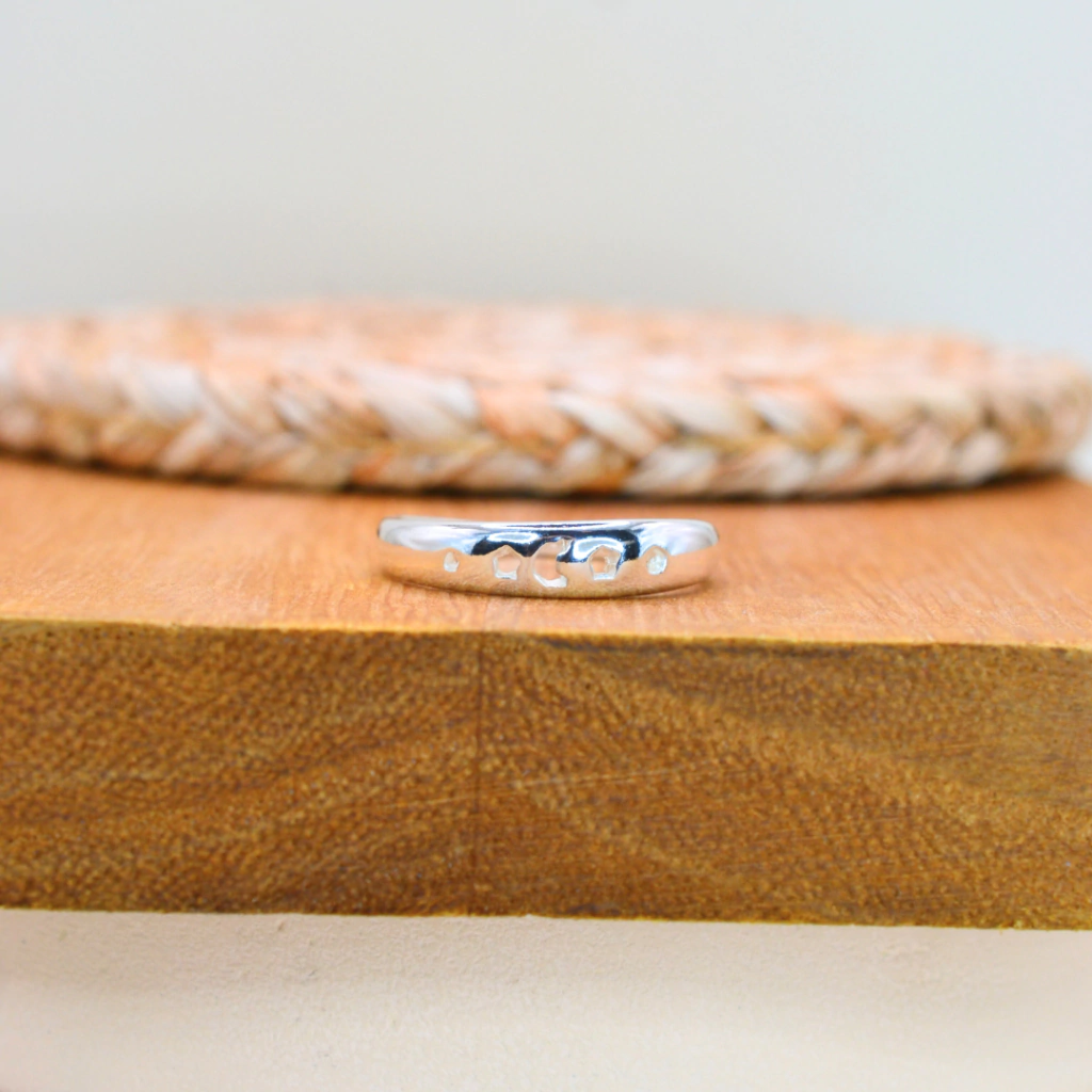 Anel Aliança Lua e Estrelas Vazadas - Prata 925