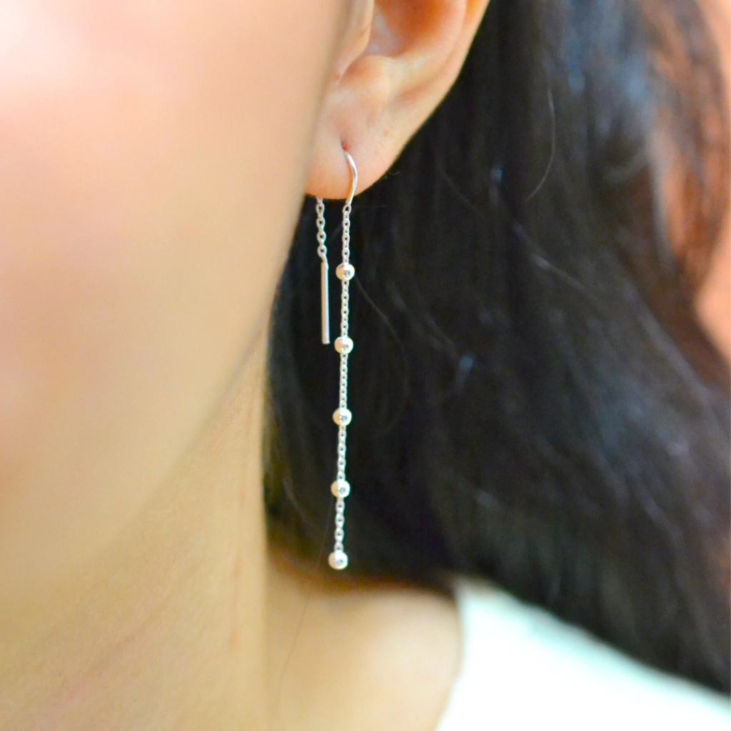 Brinco Anzol 5 Pingentes Pérolas de Água Doce Corrente Elos - Prata 925 Medida 60 mm X 3 mm Material Prata 925 e Pérola de Água Doce Cód. 9477