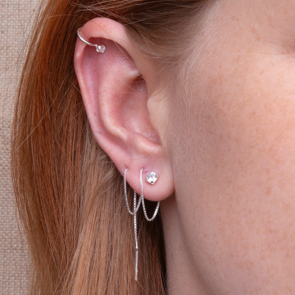 Brinco Ponto de Luz  Ponta Passante - Prata 925