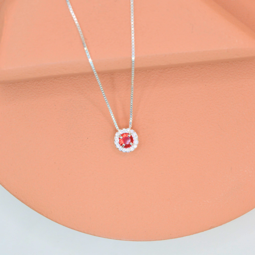 Colar Ponto de Luz Vermelha Borda Cravejada - Prata 925